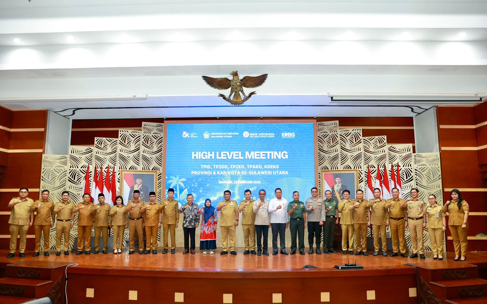 Hal ini dibahas dalam pertemuan High Level Meeting (HLM) Tim Pengendalian Inflasi Daerah (TPID), Tim Pengendalian Pangan Tim Percepatan Perluasan Digitalisasi Daerah (P2DD), Tim Percepatan dan Perluasan Ekspor Daerah (TP2E), Tim Percepatan Akses Keuangan Daerah (TPAKD) & Komite Daerah Ekonomi dan Keuangan Syariah, (KDEKS), di Manado, Senin (23/02/2026).