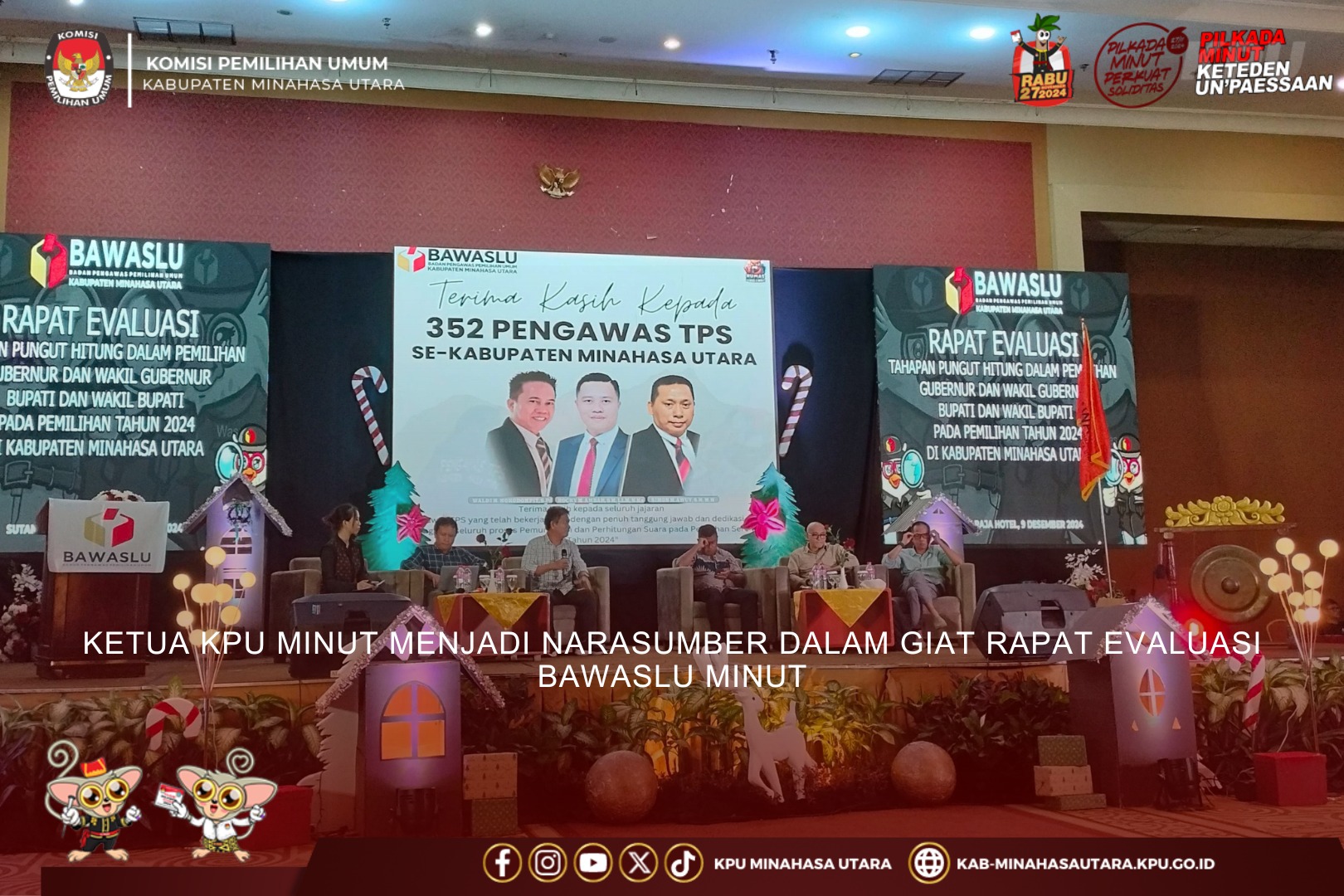 Kegiatan Evaluasi ini juga dihadiri oleh jajaran Panwascam, PPK, PKD dan Pengawas TPS Se-Kabupaten Minahasa Utara.