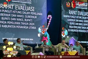 palakatberita.com – Ketua Komisi Pemilihan Umum Kabupaten Minahasa Utara (KPU Minut) Hendra S. Lumanauw Menjadi Narasumber dalam kegiatan Rapat Evaluasi Pelaksanaan Tahapan Pungut Hitung dalam Pemilihan Gubernur dan Wakil Gubernur, Bupati dan Wakil Bupati pada Pemilihan Tahun 2024 di Kabupaten Minahasa Utara yang diadakan oleh Bawaslu Minahasa Utara pada (09/12/2024) di Hotel Sutan Raja Kalawat.