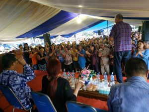 PALAKAT Minahasa Utara – Kebaktian Kebangunan Rohani (KKR) selalu diselenggarakan oleh Pemerintah Kabupaten Minahasa Utara (Pemkab Minut) demi membangun iman, mewartakan injil serta mendoakan daerah Minut agar selalu di berkati. KKR yang biasanya di laksanakan di lapangan depan Rumah Sakit Umum Daerah Walanda Maramis, kini beralih tempat ke lapangan Desa Watutumow Kecamatan Kalawat, Kamis (31/01).