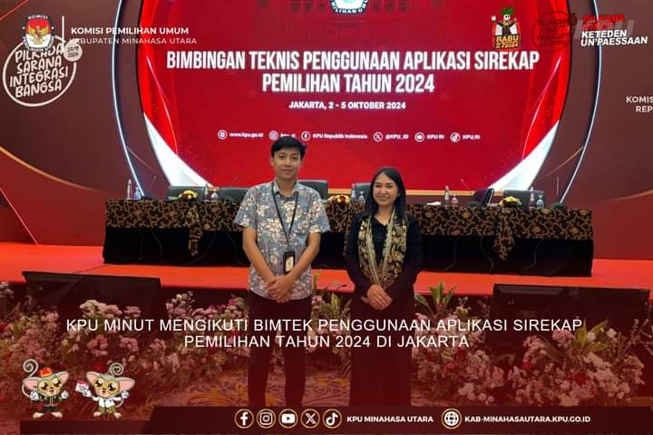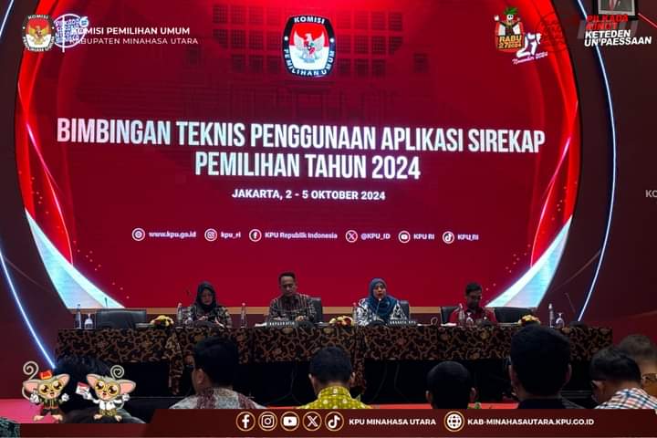 PALAKAT Jakarta–Komisi Pemilihan Umum Kabupaten Minahasa Utara (KPU Minut) mengikuti Bimbingan Teknis (Bimtek) Penggunaan Aplikasi Sirekap Pemilihan Tahun 2024, (2—5 Oktober 2024), di Hotel Borobudur, Jakarta.