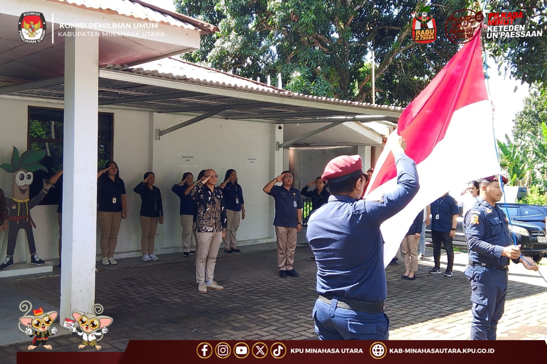 Hadir dalam upacara Ketua Divisi Teknis Penyelnggaraan, Ibnu Dali, Ketua Divisi Rendatin Ireine Buyung, serta jajaran pejabat Eselon Struktural dan seluruh pegawai di lingkungan Sekretariat KPU Minut.