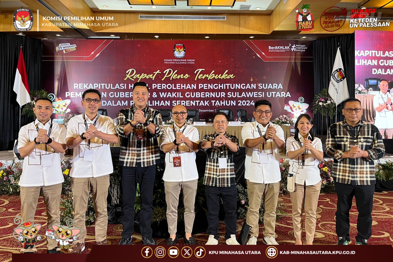 Ketua KPU Minut, Hendra S. Lumanauw dalam kesempatan tersebut membacakan Berita Acara dan Sertifikat Hasil Penghitungan Perolehan Suara Tingkat Kabupaten Minahasa Utara dalam Pemilihan Gubernur dan Wakil Gubernur Sulawesi Utara Tahun 2024.