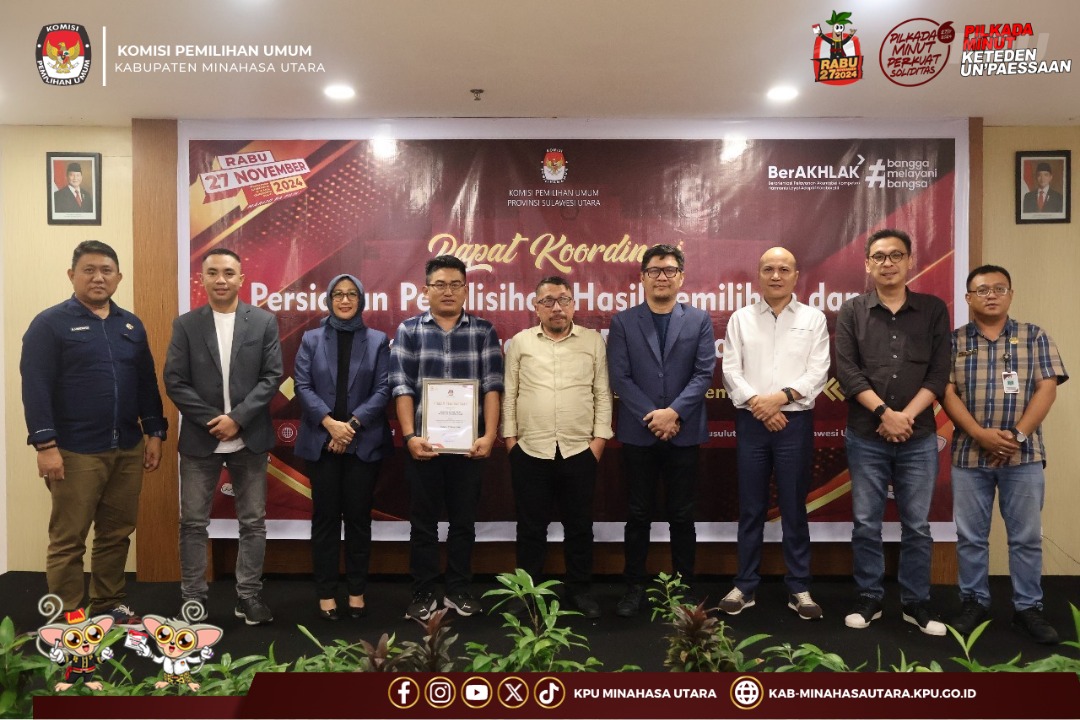 Hadir dalam giat tersebut, Ketua dan Anggota KPU Minahasa Utara, Sekretaris, Kasubbag Teknis dan Hukum dan Staf Pelaksana.