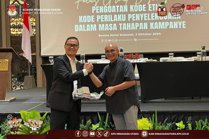 PALAKAT Minahasa Utara–Focus Group Discussion (FGD) Etika dan Perilaku Penyelenggaran Badan Adhoc Dalam Tahapan Kampanye pada Pilkada Tahun 2024, dilaksanakan oleh KPU Minahasa Utara, Kamis (03/10/2024) di Hotel The Sentra Hotel, Kalawat, Minut.
