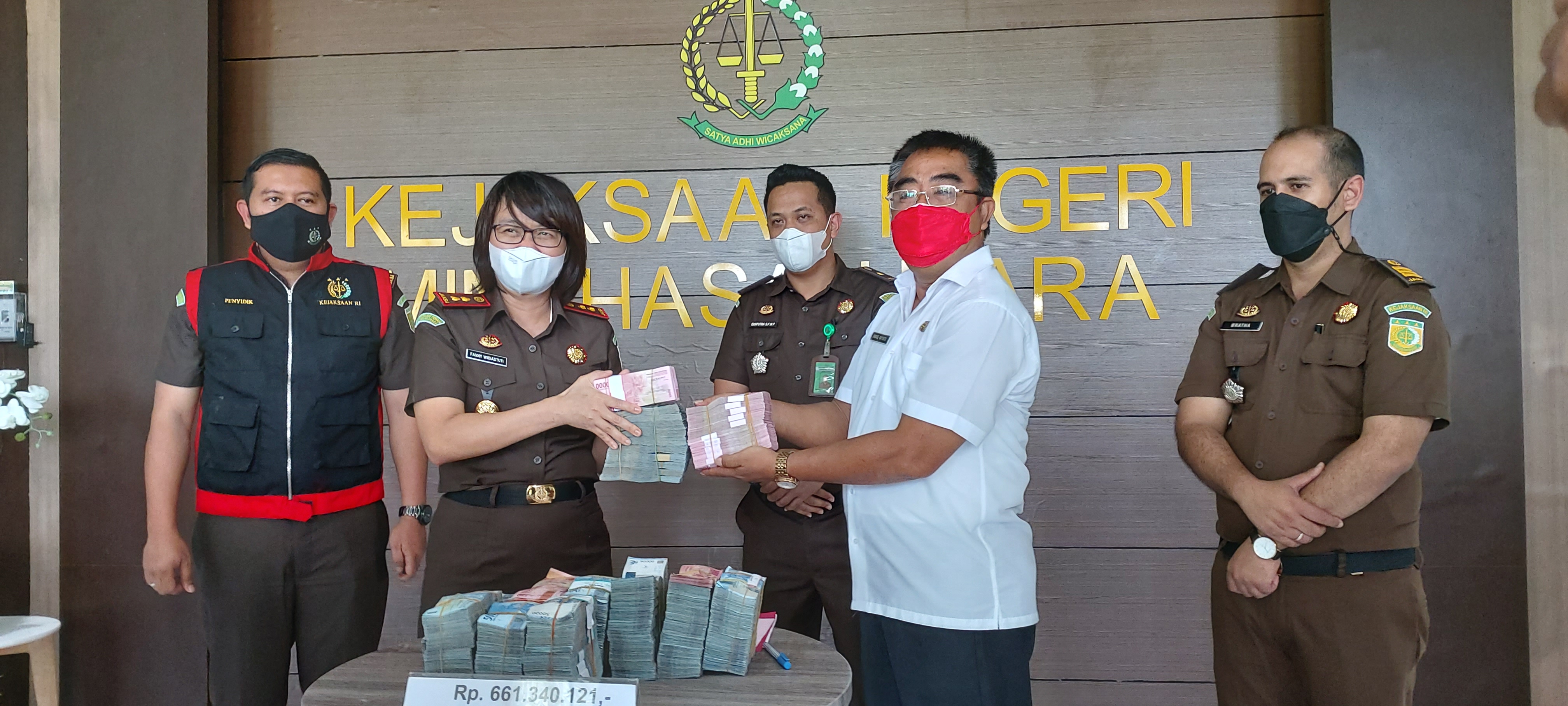 “Pengembalian uang negara berdasarkan laporan hasil pemeriksaan, Badan Pemeriksa Keuangan (BPK), menemukan indikasi kerugian negara sebanyak Rp. 661.340.121. “Ungkap Kajari Minut Fanny Widyastuti, melalui Kepala Seksi Intelijen, Jaksa Muda Ekaputra S.F.W Polimpung SH MH.