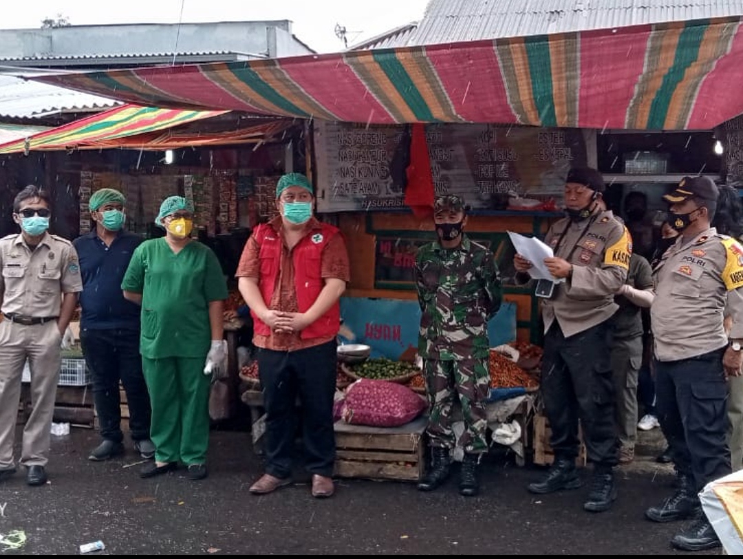 PALAKAT Minahasa Utara–Nyatakan keseriusan dukung upaya penanggulangan pandemi Corona Virus Disease (COVID-19), Satuan Tugas (Satgas) COVID-19 Pemerintah Kabupaten Minahasa Utara (Pemkab Minut) bersinergi dengan Kepolisian Resor (Polres) Minut dan TNI, lakukan operasi yustisi, menyasar Pasar Tradisional Airmadidi, Kamis (18/02).