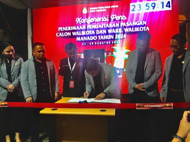 Palakatberita.co — Tahap pendaftaran pasangan calon Wali Kota dan Wakil Wali Kota Manado untuk Pilkada 2024 telah resmi ditutup pada Kamis, 29 Agustus 2024, pukul 23.59 WITA. Penutupan ini dilakukan oleh Ketua Komisi Pemilihan Umum (KPU) Kota Manado, Ferley Kaparang, didampingi oleh anggota KPU lainnya serta Ketua Badan Pengawas Pemilu (Bawaslu) Kota Manado, Brilian Maengko.