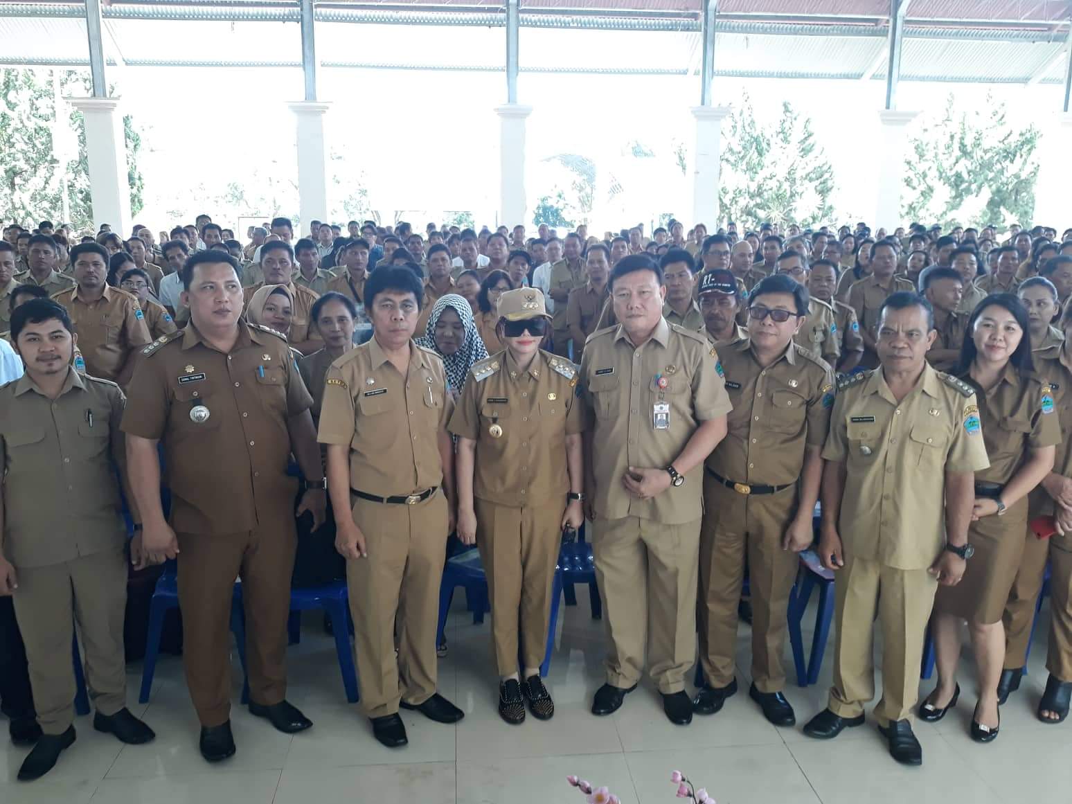 Foto bersama Bupati Minahasa Utara Vonnie Anneke Panambunan (VAP)dan pemberi materi serta para peserta Pelatihan Aparatur Desa Se-Kabupaten Minut