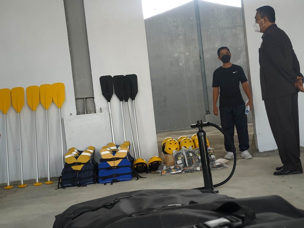 Perlengkapan tersebut terdiri dari, dua unit perahu karet (boat), sepuluh dayung (paddle), delapan pasang sepatu (water shoes), delapan pelampung (life jacket), delapan pelindung kepala (helm), satu pompa (pump) .