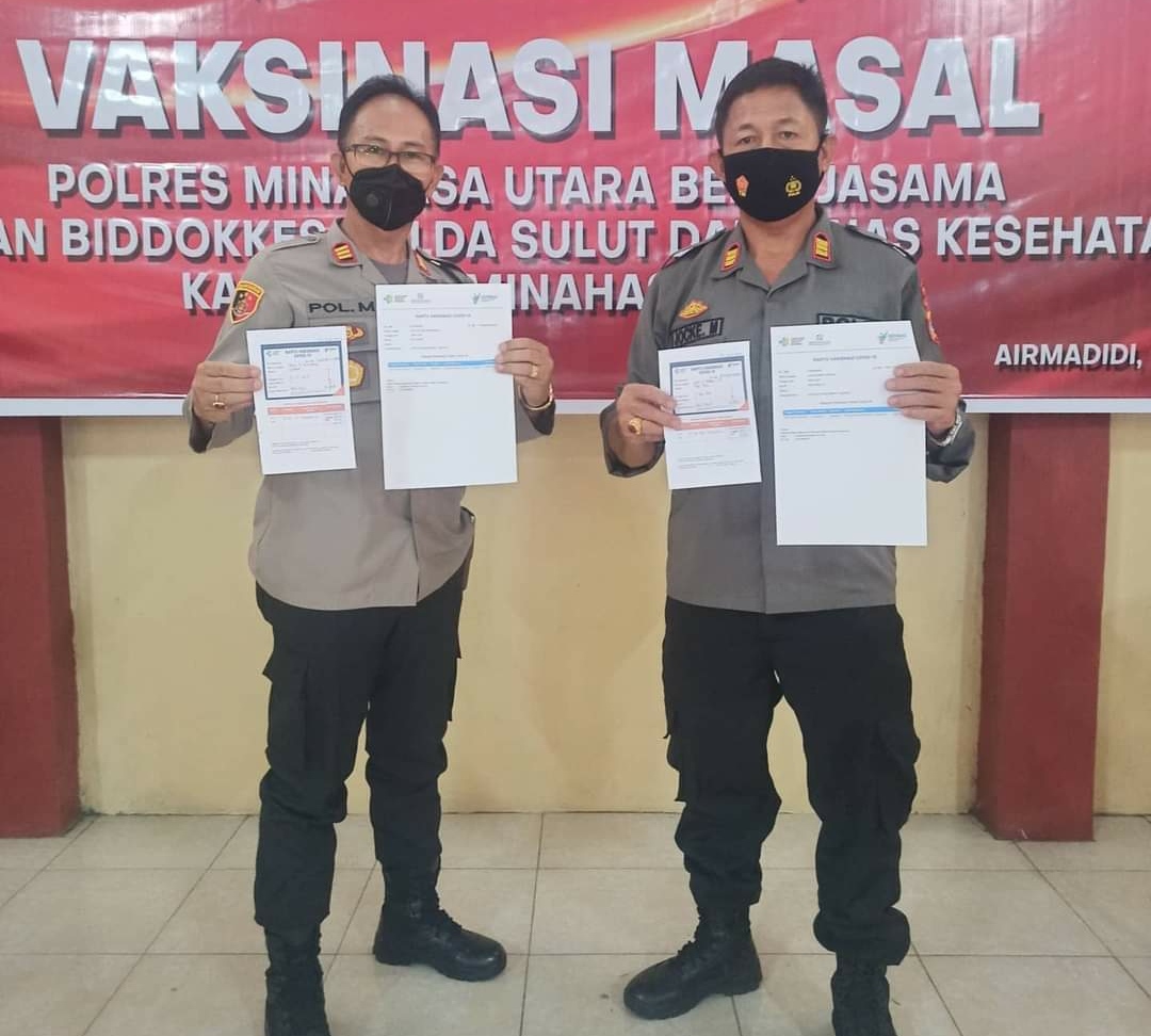 Vaksinasi tersebut berlangsung di Poliklinik Polres Minahasa Utara, juga mengikutsertakan jajaran Polres Minut, berlangsung dua hari sejak 16 hingga 17 Maret.