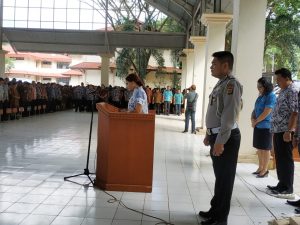 Bupati Minut Vonnie Anneke Panambunan hadir memimpin apel juga memberikan ucapan selamat Natal dan Tahun Baru serta memotivasi seluruh peserta apel untuk mensyukuri tahun yang baru dan bekerja melaksanakan tugas tanggung jawab dengan sebaik – baiknya.